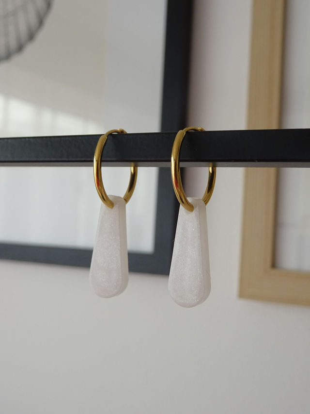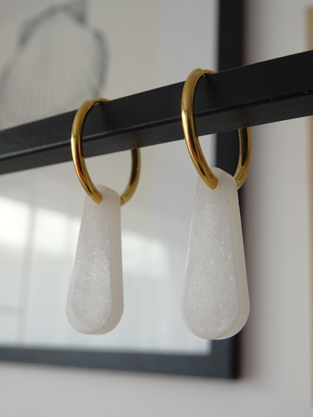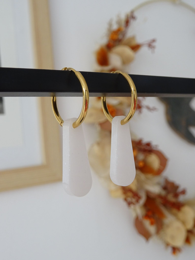 Pampilles en résine. Anneaux en acier inoxydable de 17mm.