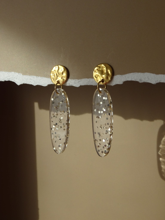 Pampille de 30 x 11 mm. Puce en acier inoxydable de 10 mm.